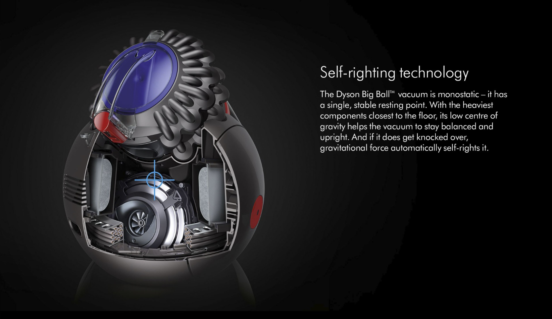 With it's low centre of gravity in the ball, it almost instantly self-rights allowing you to carry on vacuuming with no interruption.